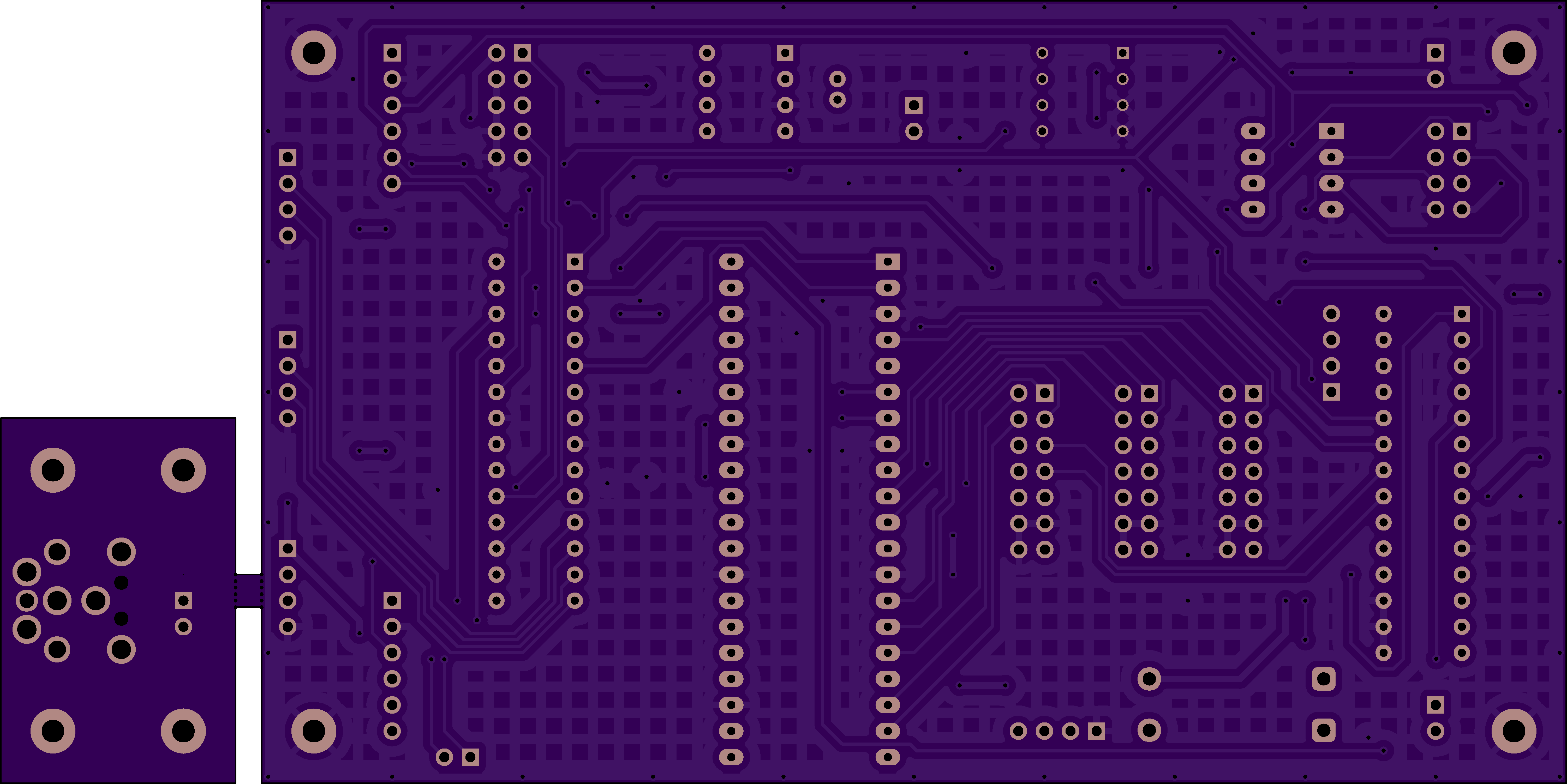 The top of the PCB designThe bottom of the PCB designA 3D rendering of what the PCB looks like with momst of the components soldered on